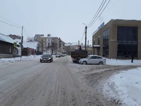 На пересечении улицы Калинина и Волжского переулка сегодня, 22 ноября, в первой половине дня не разъехались КАМАЗ-погрузчик и легковой автомобиль Лада Гранта.