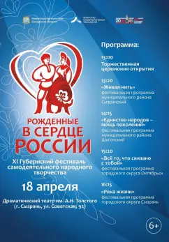 В субботу, 18 апреля, Сызрань станет центром культурного события регионального масштаба. На сцене местного драматического театра откроется Губернский фестиваль самодеятельного народного творчества «Рожденные в сердце России».