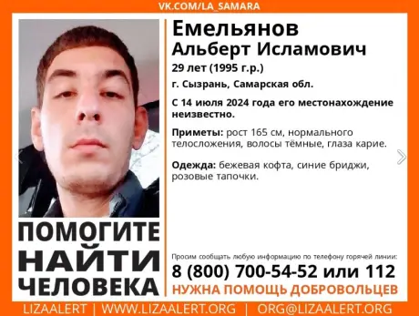 В Сызрани бесследно пропал Альберт Исламович Емельянов. О судьбе 29-летнего мужчины ничего не известно с 14 июля этого года.