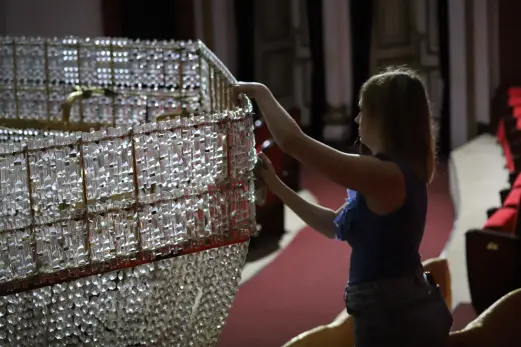 - Один раз в год люстру опускают в зрительный зал буквально по сантиметру, чтобы она не раскачивалась и не была повреждена. Время спуска и подъема занимает около 40 минут. Театральную красавицу моют по старинке - вручную, протирая каждый ее фрагмент, - рассказали 29 августа в сызранском Драмтеатре.