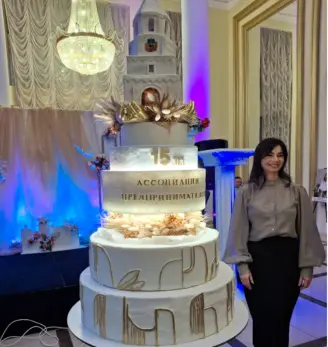 Этот торт стал подарком бизнес сообществу от победителя городского финала образовательного проекта «Мама предприниматель, владелицы кондитерского бутика, мамы троих детей и члена ассоциации Галины Крыловой.