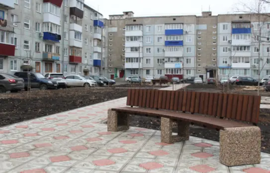Жильцы домов захотели создать в центре площадки уютную зону отдыха из вымощенной брусчаткой дорожки, бетонных скамеек со спинками и урнами для мусора. По итогу так и получилось. Кроме того, здесь также было предусмотрено озеленение территории - работники МКУ «СГХ» высадили во дворе 15 молодых саженцев каштанов.