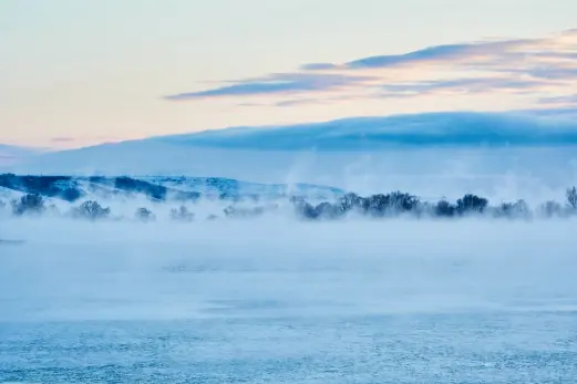 - Сегодня зима показывает один из своих самых красивых фокусов - река будто дышит и выпускает пар. Такое «кипение» можно увидеть нечасто. В сильный мороз тёплая вода встречается с холодным воздухом, и над рекой поднимается густой туман. Вот такая магия, - отмечают городские власти.
