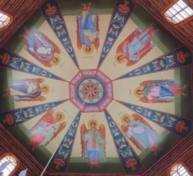 - Теперь восемь архангелов с хризмой в центре, расположившихся на 83 кв.м, взирают на молящихся с 13-ти метровой высоты. Сердечно благодарю всех успешно потрудившихся над данным проектом: Марину - идейного вдохновителя и ктитора, Александра - за чертёж потолка, Виталия - за печать священных изображений на холсте, Романа и Ольгу с бригадой - за монтаж гипсокартона и десятков холстов, прихожан - за терпение и наведение чистоты, - рассказал настоятель храма игумен Марк.