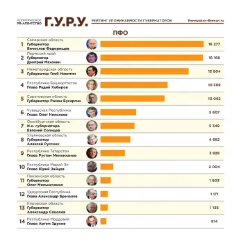 Так, Вячеслав Федорищев по итогу марта собрал 16 277 упоминаний в каналах, разместившись на первом месте в рейтинге упоминаемости в Приволжском федеральном округе. Также он занял седьмое место в общем рейтинге упоминаемости губернаторов и седьмое место в топе по индексу активности аудитории.