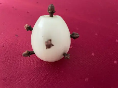 На самом деле «гвозди» - это бутоны гвоздики, которые втыкают в очищенную луковицу. Обычно используют 5-6 соцветий, чтобы раскрыть тонкий пряный аромат специи.