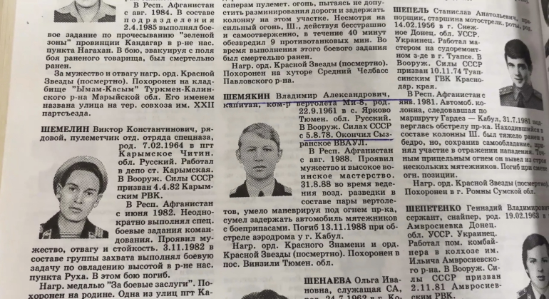 Один из погибших - капитан Владимир Шемякин. Он прибыл в Афганистан в августе 1988 года, а уже в ноябре погиб при обстреле аэродрома моджахедами. Был награжден орденом Красного Знамени, а посмертно удостоен ордена Красной Звезды.