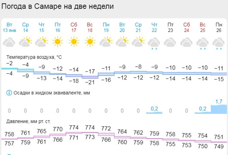 Если в четверг, 15 января, в Самарской области оно будет находиться на отметке в 765 мм ртутного столба, то к субботе, 17 января, поднимется до 774 мм и продержится на этой отметке два дня. Такой прогноз дает Gismeteo.