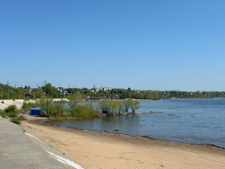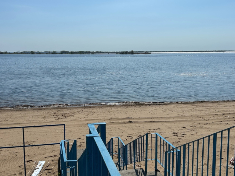 Волга «съела» часть сызранского пляжа из-за сбросов на Жигулевской ГЭС. Песчаный берег на популярном месте отдыха заметно сократился в связи с подъемом уровня Саратовского водохранилища. От лестничного спуска до кромки воды осталось без малого около двух десятков метров.