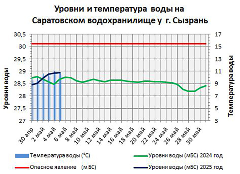 Напомним, уровень воды в Волге резко поднялся после начала сбросов паводковых вод через Жигулевский гидроузел. По данным на 5 мая, уровень воды в водоеме около Сызрани достиг почти 29 метров по мБС. В прошлом году в эти дни было на полметра ниже. Опасным считается уровень чуть выше 30 мБС.