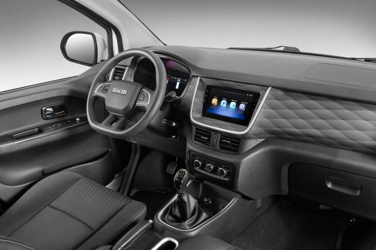 В единую комплектацию для обеих версий SKM М7 входят кондиционер, передние подушки безопасности, система курсовой устойчивости и антипробуксовки, задние дисковые тормоза, парктроник, камера заднего вида, датчик света, электрорегулировка зеркал, светодиодные ходовые огни, мультируль, наружные зеркала заднего вида с указателями бокового поворота, подогрев передних сидений, обогрев зеркал, мультимедиа и цифровая комбинация приборов, ЭРА-ГЛОНАСС, телематическая система с включенным обслуживанием на три года и голосовыми подсказками. На первом этапе SKM будут доступны в двух цветах кузова - белом и темно-синем. Позже в цветовой гамме модели появится серый металлик.