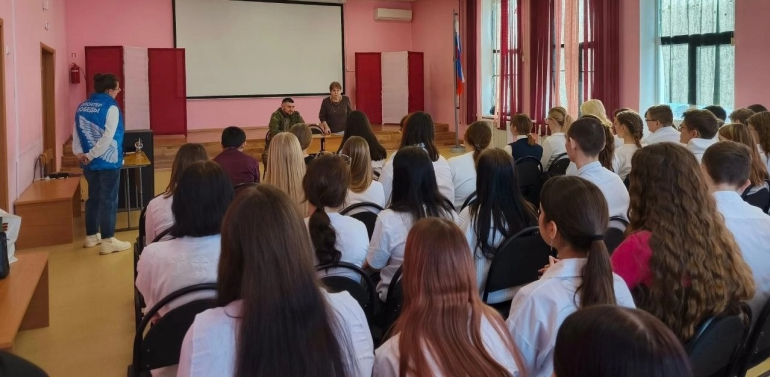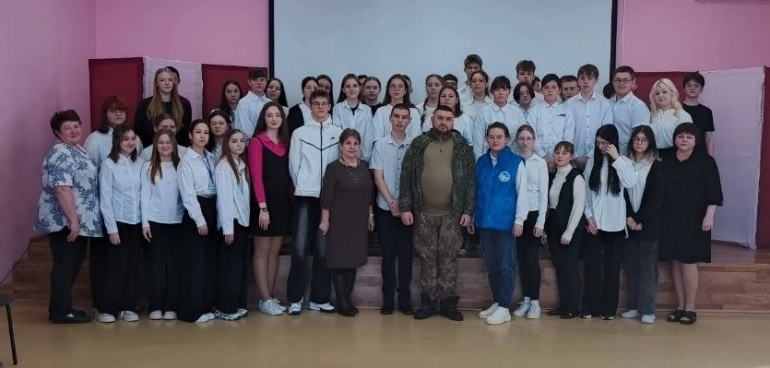 Ребята с большим интересом общались с гостями и задавали множество вопросов. Школьников очень интересовали темы о гуманитарной помощи, об оружии и снаряжении. Поступали от подростков и неожиданные вопросы. Например, о подписании контракта или об обстановке в стране.