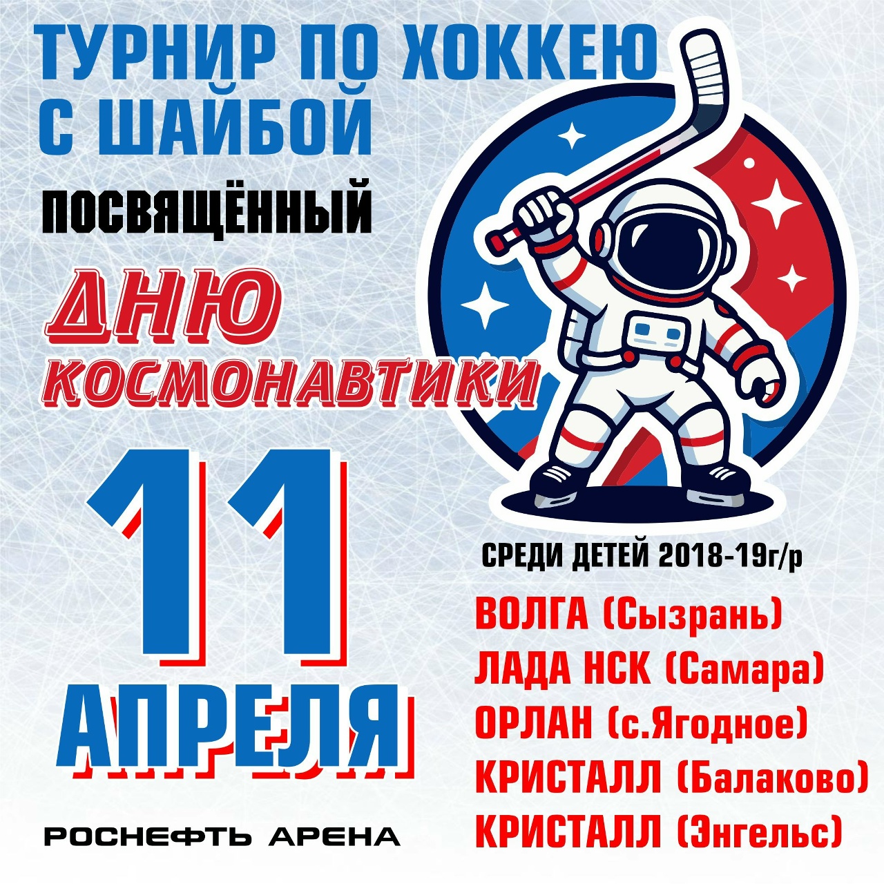 Сызранских болельщиков впереди ждет насыщенная хоккейная суббота. 11 апреля в городе пройдет крупный турнир по хоккею с шайбой, посвященный Дню космонавтики.