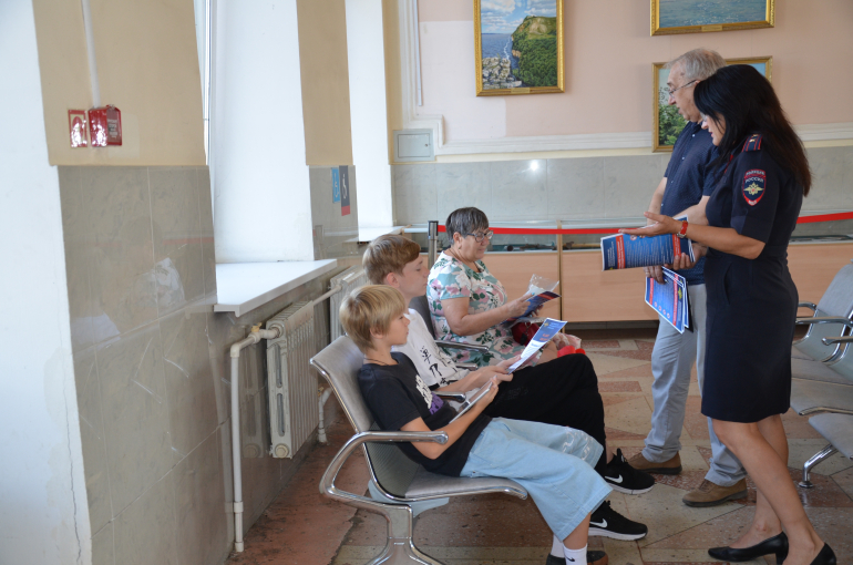 Общаясь с гражданами, транспортные полицейские напоминали им о соблюдение мер личной и имущественной безопасности в пути следования и вручали профилактические памятки с информацией о различных видах дистанционного мошенничества.