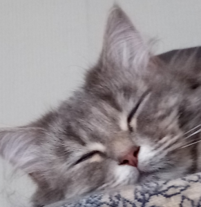 Девушка говорит, что кошка очень красивая, у нее шерсть, похожая на шиншиллу.