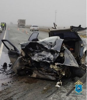 Лобовое столкновение произошло в 8.40, когда 71-летний водитель автомобиля ВАЗ-21703 выехал на встречную полосу и попал под страшный удар грузовой фуры DAF FT XF105 460 с полуприцепом. После удара грузовая фура врезалась в иномарку Киа Рио, которая ехала в направлении Бугуруслана.