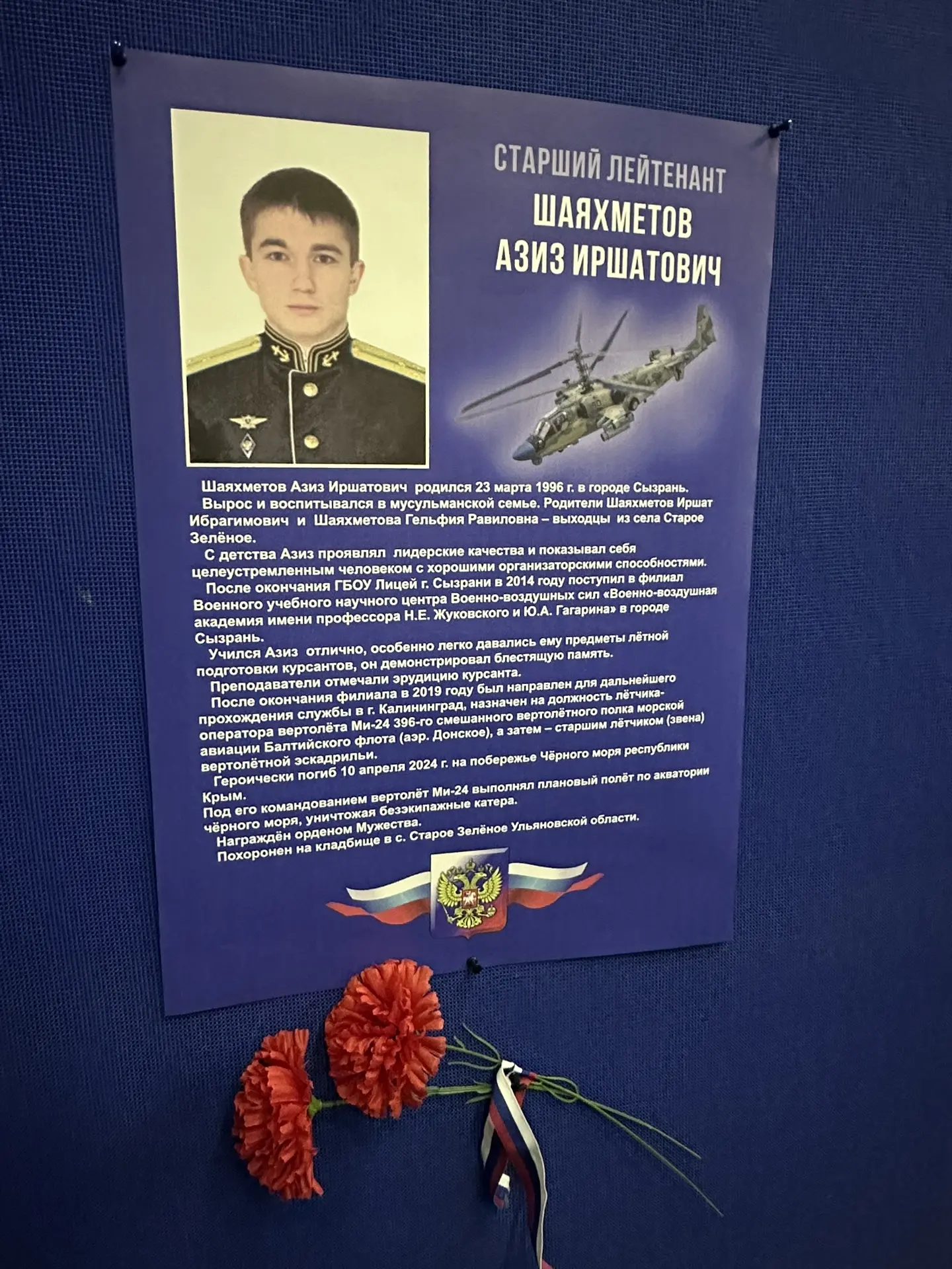 В Сызрани прошел памятный вечер в честь земляков, погибших при выполнении боевых задач. В ДМО установили стенды с портретами участников СВО - среди них особое место занял портрет старшего лейтенанта Азиза Шаяхметова, чье мужество и преданность долгу стали примером для подрастающего поколения.