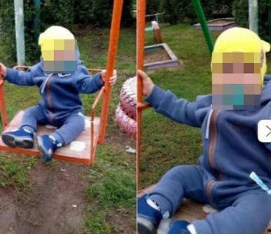 На фото мальчик, которому на вид около двух лет, сидит как раз на качели.