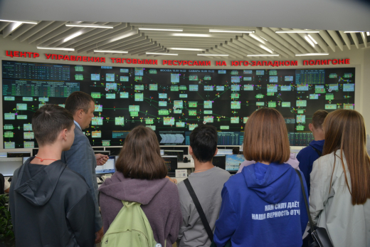Ребят из разных школ от 7-го до 11-го класса пригласили в центр управления железнодорожными перевозками. Сразу на входе их встретили, как важных гостей и даже подарили сувениры, а дальше - экскурсия по всем этажам.