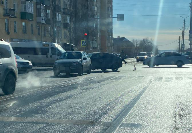 Авария случилась на регулируемом перекрестке улиц Московской и Фридриха Энгельса сегодня днем, 18 февраля. В ДТП попали Лада Веста и Лада Гранта, которые ехали в попутном направлении.
