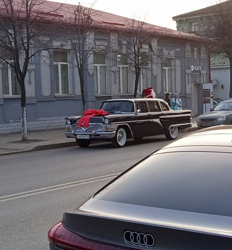 Кроме самого появления новогодних героев, местных жителей также удивил и транспорт, на котором пони передвигались. Вместо саней, запряженных тройкой лошадей, у дороги оказался припаркован легендарный ГАЗ-13 «Чайка». Ретро-авто украсили красным бантом. В чем заключалась акция – остается только догадываться, но автор фото в сети отметил коротко и ясно: «Сызрань удивляет».