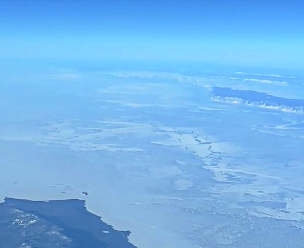- На видео - замерзшее озеро Байкал, рейс Чита‑Екатеринбург, с высоты 10 км. Хорошо видны остров Ольхон и полуостров Святой Нос, - пояснил пилот.