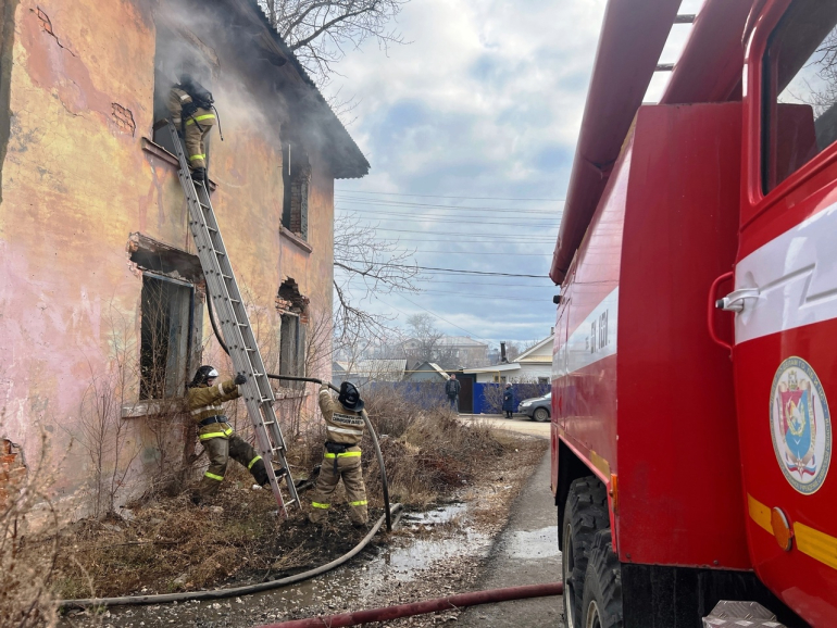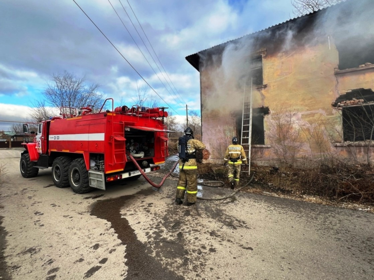 Заброшенный дом вспыхнул в районе часа дня на улице Шмидта. Тушить здание примчались два пожарных расчета и добровольцы из пожарной команды города.