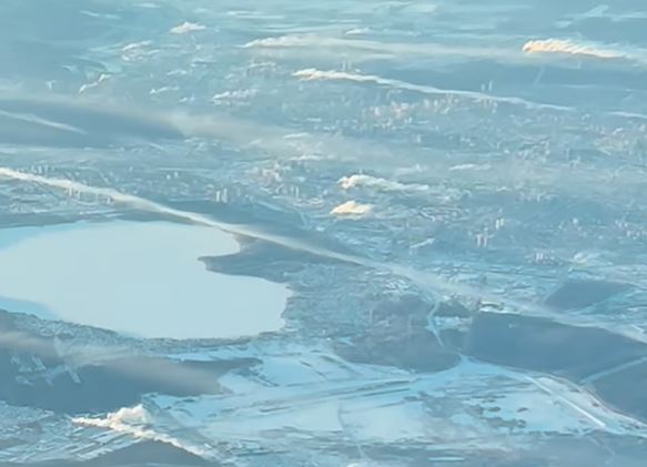 Кроме того, на кадрах с заснеженным Екатеринбургом в левой части города видна промышленная зона уральского города-миллионника, где дымят десятки труб. На эту особенность, а также на форму озера, расположенного невдалеке также обратили внимание подписчики Героя России.