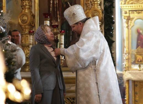В главном храме Сызрани Александра Викторовна приняла участие в Божественной литургии, которую возглавил бывший самарский владыка, митрополит Сергий.