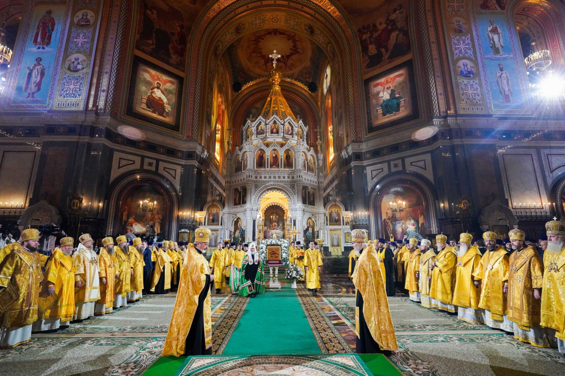 В ходе богослужения молились духовенство и многочисленные верующие. Песнопения исполнил хор Храма Христа Спасителя. Богослужение транслировалось в прямом эфире на православных и федеральных телеканалах.