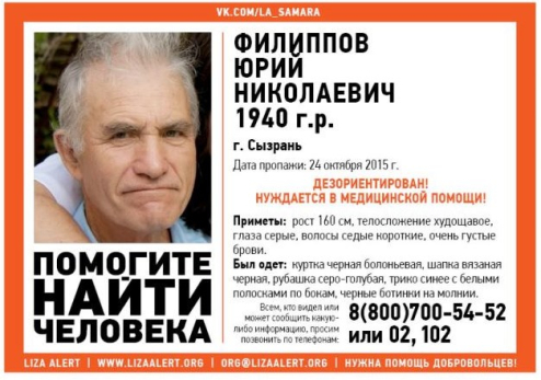 В Сызрани продолжаются поиски пожилого мужчины, который пропал почти десять лет назад. О судьбе Юрия Николаевича Филиппова ничего не известно с 24 октября 2015 года.
