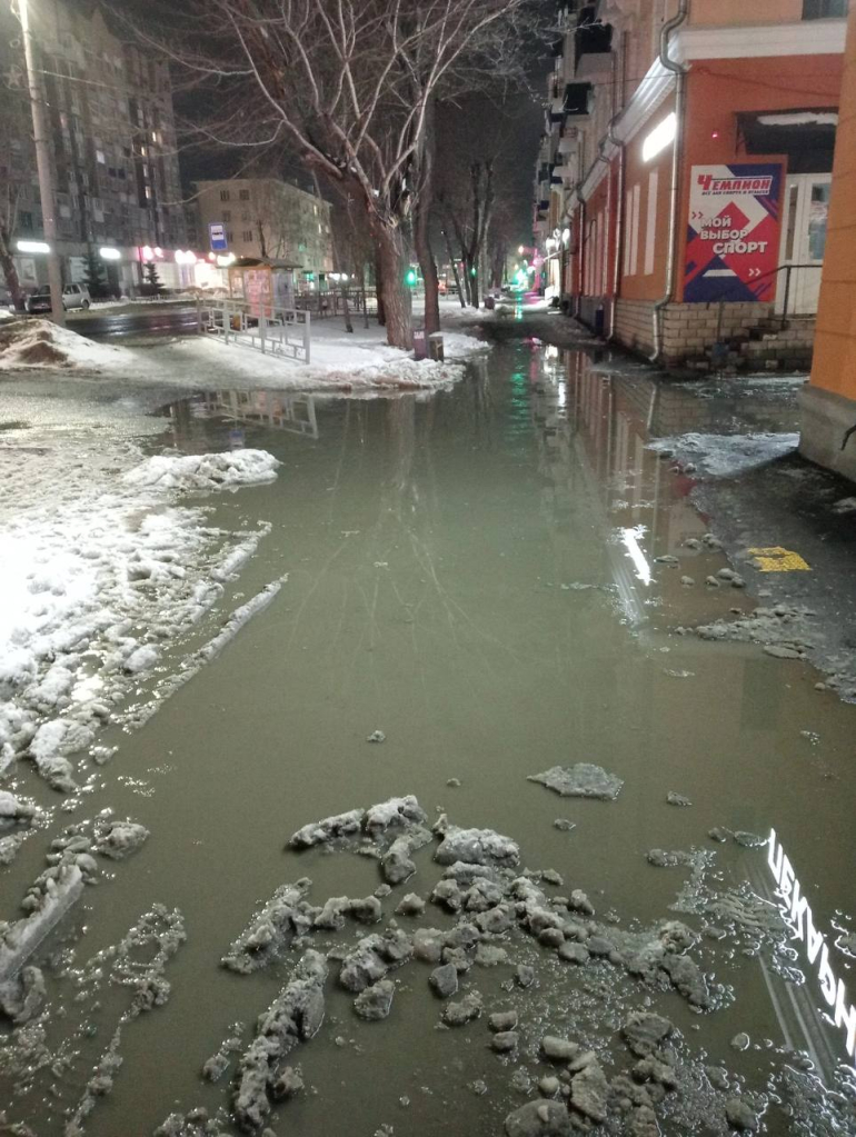 Несмотря на то, что на этой неделе коммунальщики бросились убирать снег в преддверии грядущего паводка, в ряде районов города образовались весенние «озера». Пример тому - улица Московская, где талые воды залили тротуар и район железнодорожного вокзала.
