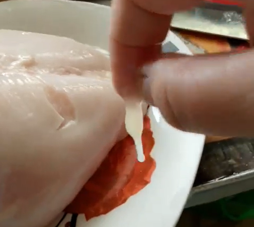 - Купила на свою голову курочку, походу, про ту, которую говорили. Сняла одну пленку, под ней еще одна. Вот нажимаешь, а с нее гель идет, под этой пленкой везде гель. Это ужас. Вот такой вот гель, как сопли. Всю курицу выжала. Я думаю, почему у меня кошка смотрит на эту курицу и не ест, - говорит сызранка на видео.