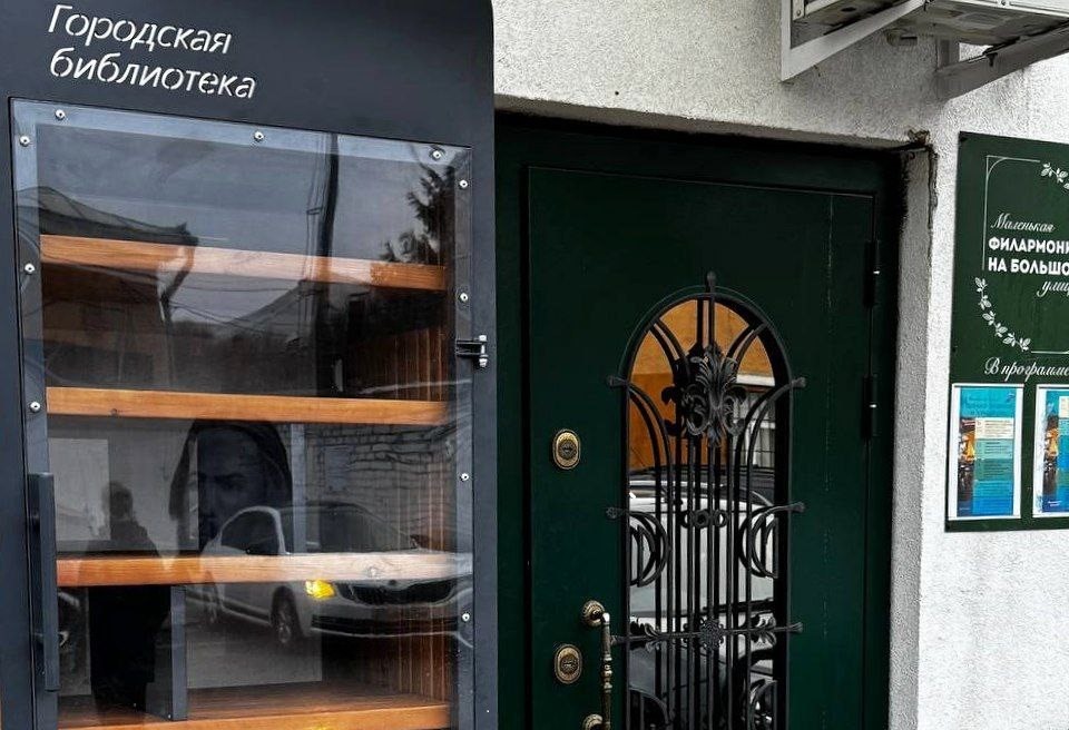 Шкаф для обмена книгами установлен у входа в Камерную филармонию на улице Советской.