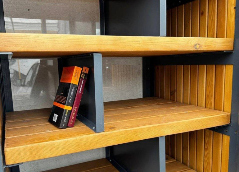 Пока на полках только две книги, но любой желающий может пополнить содержимое шкафа, также, как и взять понравившуюся литературу.