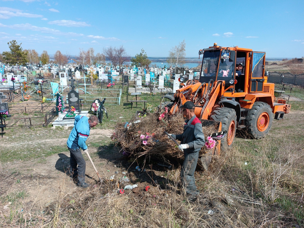 Ежедневно рабочие МКУ «Благоустройство» с помощью спецтехники убирают мусор и сухую траву на территории кладбищ «Батракские», «Фомкин Сад», а также «Уваровское» и «Новокашпирское».