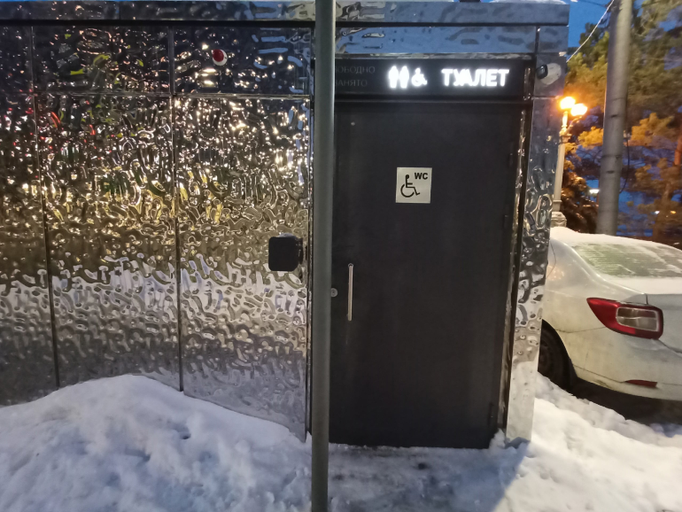 Впрочем, несмотря на декларированную доступность для всех категорий граждан, горожане столкнулись с загадкой и не поняли, как попасть в кабинку для маломобильных посетителей. Дело в том, что путь к ней преграждает столб.