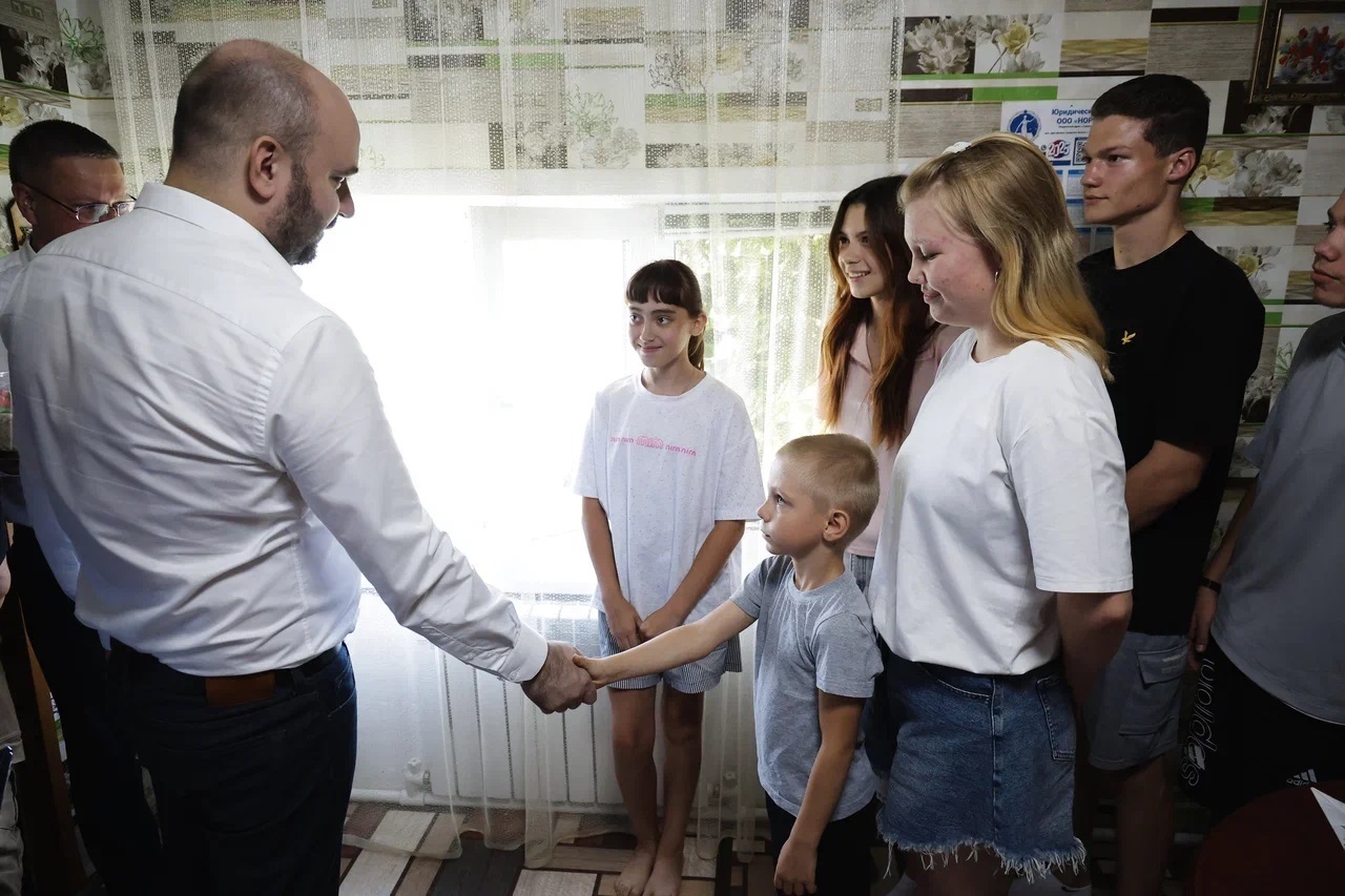 Особое внимание губернатор уделил общению с многодетной семьей Трифоновых из Константиновки, воспитывающей семерых детей. Вячеслав Федорищев высоко оценил вклад семьи в развитие района и пригласил их на футбольный матч «Акрон - Крылья Советов», который состоится 19 июля.
