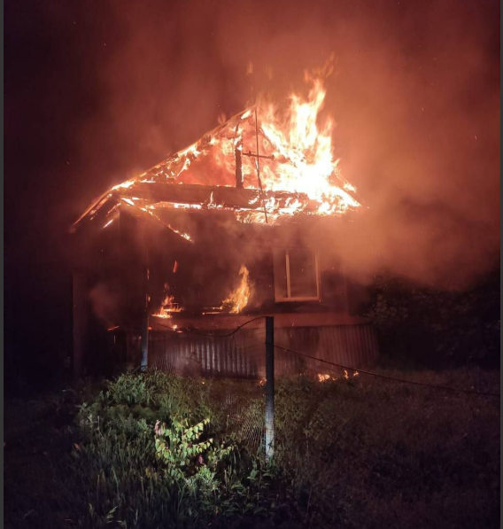В Октябрьске недалеко от кладбища загорелся частный дом. Все произошло поздно вечером в пятницу, 23 мая. Вызов в дежурную часть поступил в 22:34.