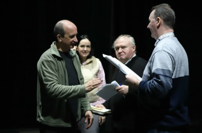 Режиссер спектакля Олег Шахов проводит репетиции, шьются костюмы, кипит работа над декорациями.