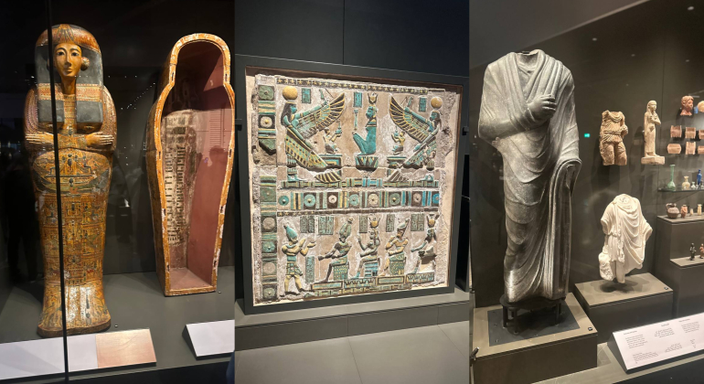 В музее также представлены предметы старины от доисторических времен до римской эпохи, сгруппированные по эпохам и темам. Кроме того, музей оснащен передовыми технологиями, такими как мультимедийные презентации и шоу смешанной реальности. Всего в музее представлено более 100 000 артефактов, охватывающих все периоды Древнего Египта.
