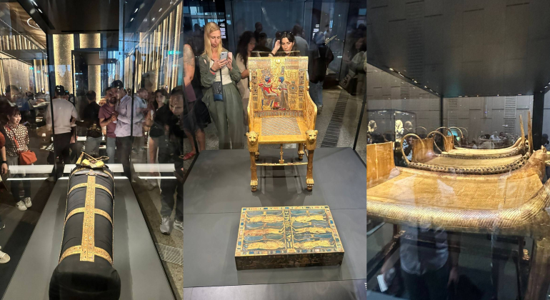 Армен отмечает, что главная жемчужина музея – это полная коллекция сокровищ из гробницы фараона Тутанхамона, впервые выставленная полностью, включая золотую погребальную маску, саркофаги и колесницы.