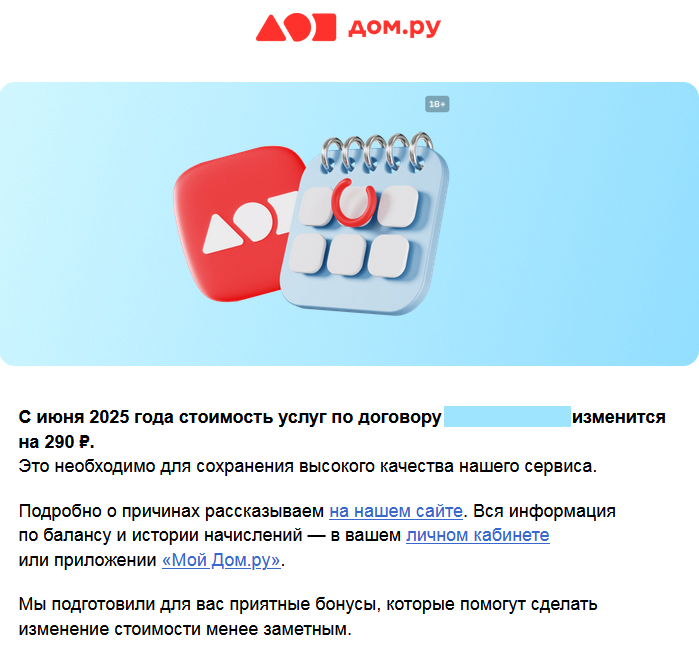 Российский провайдер «Дом.ру» начал предупреждать клиентов о повышении стоимости ряда услуг с июня 2025 года. Цены на пакетные предложения в ряде случаев могут вырасти более чем на 10 процентов.