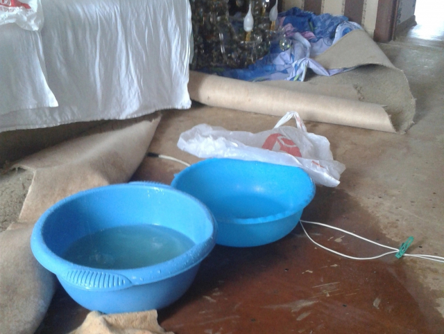 - Мы уже прошли семь кругов ада! Просто с ужасом ждем прихода весны. Крыша дома неисправна и постоянно течет. Мы живем на четвертом этаже, у нас затапливает стены и полы. В квартире - сырость, развивается грибок. Уже поврежден натяжной потолок. Нам приходится отключать электричество и даже снимать люстру. Под воду ставим тазики, - рассказала женщина КТВ-ЛУЧ.