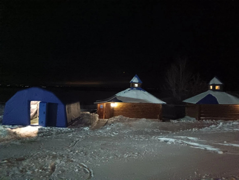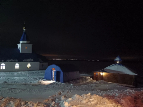 По традиции, священнослужители проведут чин освящения воды, после чего все желающие могут совершить обряд омовения. На кадрах видно, что рядом с источником установлена теплая пневмокаркасная палатка для переодевания.
