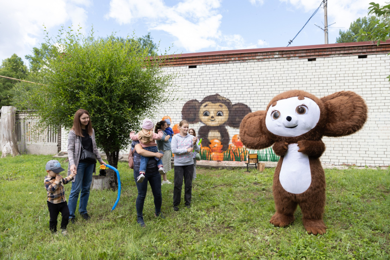 Михаил провел мастер-класс по граффити, научил малышей и взрослых рисовать на стене, наглядно показывая технику нанесения аэрозольных красок. Выбор героя граффити не случайно пал на Чебурашку. Этот персонаж советских мультфильмов получил «вторую жизнь» благодаря новому российскому фильму.