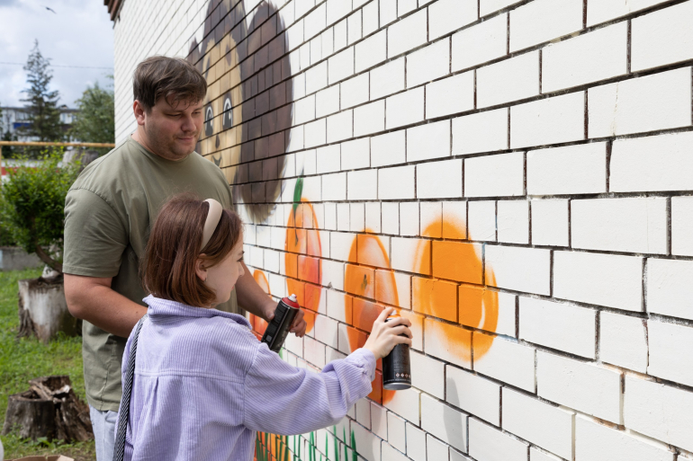 Яркое граффити стало возможным благодаря Службе ранней помощи, родителям с детьми, активным гражданам и местному художнику Михаилу Кузнецову (псевдоним - STOTCH).