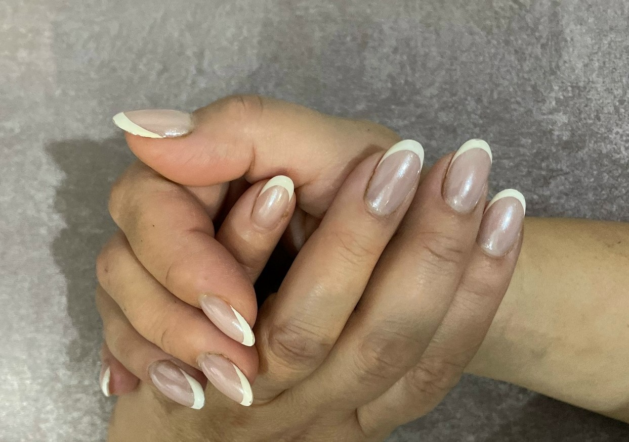 Микрофренч - ультратонкая белая линия на коротких ногтях. Выглядит изящно и актуально.