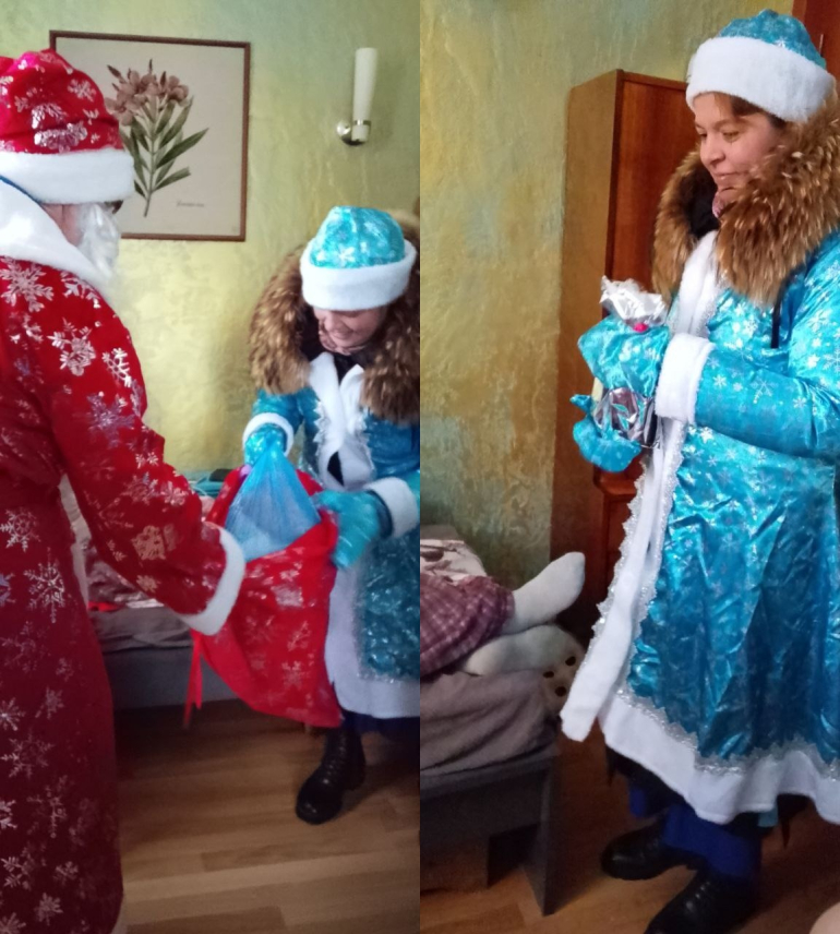 Самый трогательный момент дня для рождественского патруля «Доброй Сызрани» стал визит к их подопечным. Первой Дед Мороз и Снегурочка навестили бабушку, которая сейчас прикована к постели.