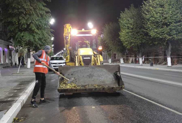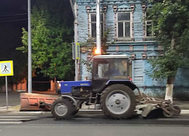Улицы Сызрани стали убирать по ночам. О коммунальщиках, которые работают под луной, сообщили в комитете ЖКХ. В подтверждение опубликованы фотографии рабочих, лопатами собирающих листву в ковши экскаваторов . В свете фонарей улицы убирает спецтехника с щетками и скребками.